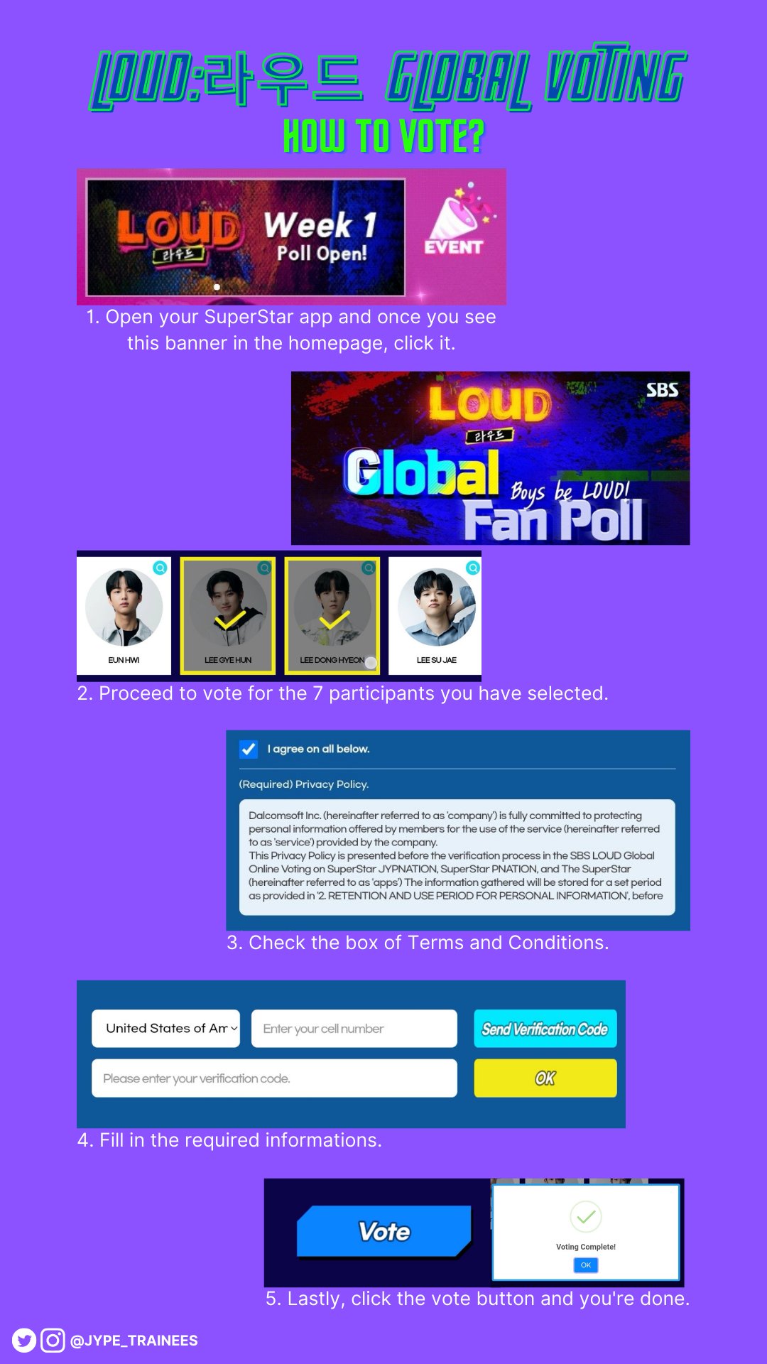 Jyp Trainees On Twitter Loud 라우드 Global Voting How To Vote Guide Open Your Superstar App Please Sign In W Your Dalcom Id Vote Your Chosen 7 Participants Please Include Kyeongmun